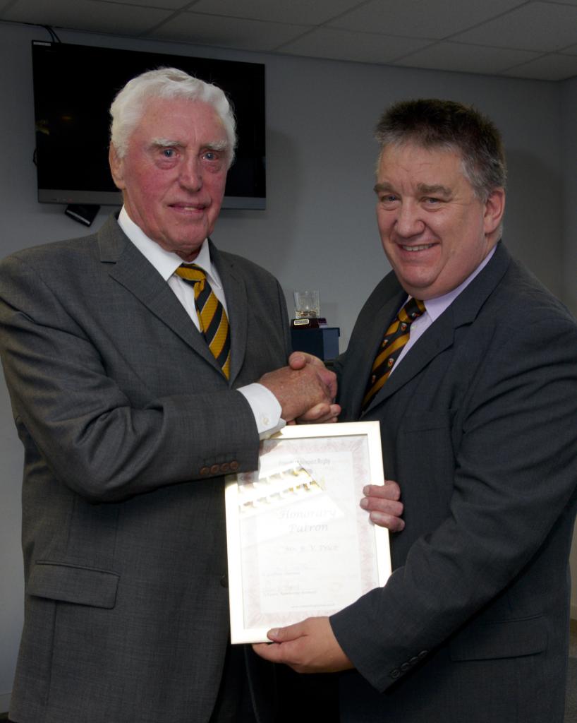 A highlight of the evening was the appointment of Brian Price as Honorary Patron of The Friends of Newport Rugby Trust being welcomed by John Evans, Membership Secretary of the Trust.