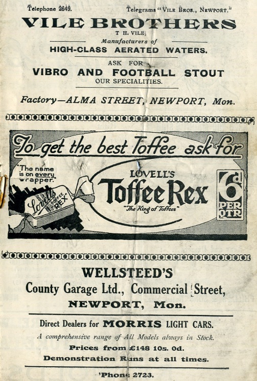 Prolonged heavy rain in the days leading up to this fixture ensured that the match was played on a quagmire of a pitch and eventually petered out into a scoreless draw. Scoreless games were quite common in the early part of the 20th century but are almost unheard of now. The Newport forwards dominated the game but were unable to manage a score.