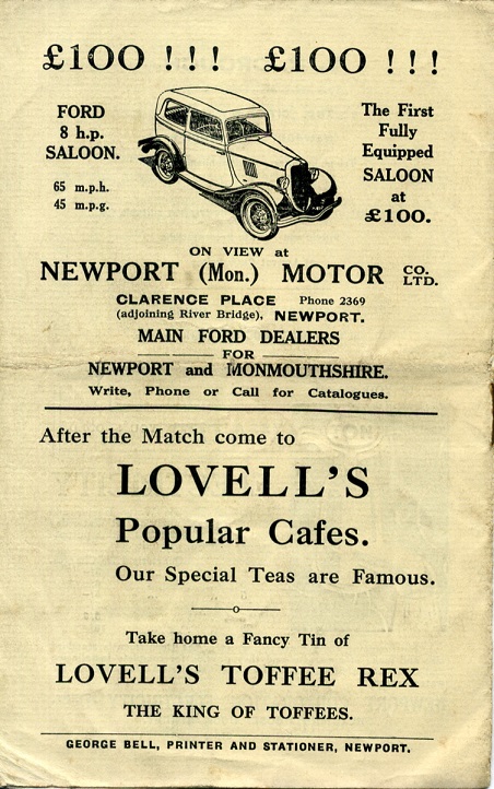 The score flattered the New Zealanders as Newport had enjoyed much more territorial advantage. Probably the youngest Newport pack ever to take the field in an international fixture (R.H. Williams was just out of the High School), played with a confidence and style that belied their tender age in this battling performance against formidable opponents. Led superbly by J R Evans, and with 'Bunner' Travers excelling in all facets of the game, the pack swarmed all over the field and the youthful Travers gave a hint of the greatness that was to come by decisively out-hooking his New Zealand counterpart. Newport lacked pace behind however and the All Blacks added to their lead with a goal from a mark by McKenzie and a scrappy try from Ball. The Black and Ambers were not done however and wing Jack Knowles scored a fine try under the posts which John Evans converted. Sadly John Evans was later to be killed on active service in North Africa in World War II. Although the defeat was clear-cut, the game ranked with the historic encounters of 1905 and 1924. It must be remembered that 14 of the 17 points scored by New Zealand came from kicks - the try count was equal!
