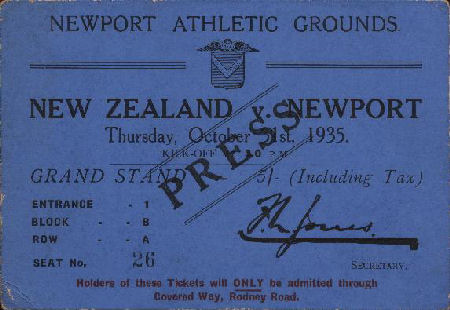 The main source for the following is an article in the match programme for Newport v New Zealand in 1989:-