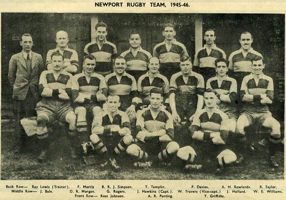 "Captain of the last Newport team who met the New Zealanders in 1935 was J. R. Evans, who was killed in action in this War. John was a great player and an inspiring leader, and his influence in Newport Rugby is sadly missed."
