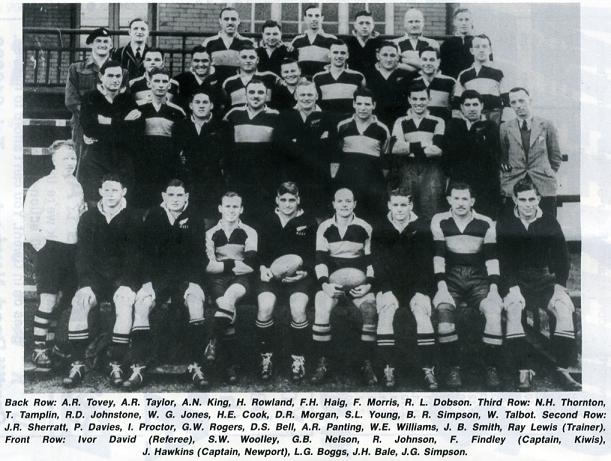 Footnote: Bob Evans made a quick recovery from his injury and was one of the stars in the Monmouthshire team which won a sensational victory over the Kiwis. Seven Newport players besides Evans were in that team - Tyssul Griffiths, Billy Williams, Ross Johnson, Hedley Rowland, Frank Morris, Ernie Coteman and the capain Jim Hawkins. The latter was the architect of victory with his tactical control, and a crowd of some 25,000 who were at Pontypool Park will remember 27th February 1946 with some affection!
