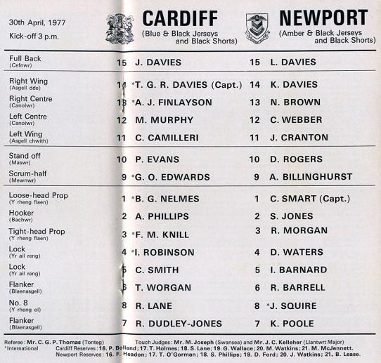 "It needed a monumental effort from this present Cardiff team to put them out and the subsequent hurdles of Pontypool and Aberavon in the semi-finals have fully extended Wales' most famous club in a way highly appropriate in their centenary year. In just 44 games they have passed the 1,000 point mark, one of the most impressive club scoring records in postwar British rugby, yet Cardiff go into this afternoon's match as slight underdogs."