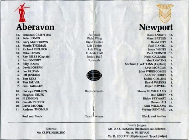 "Best wishes go to 'MJW' and his team as they strive to add another chapter to Newport's illustrious history, to Aberavon and referee, Clive Norling, for a game to remember."