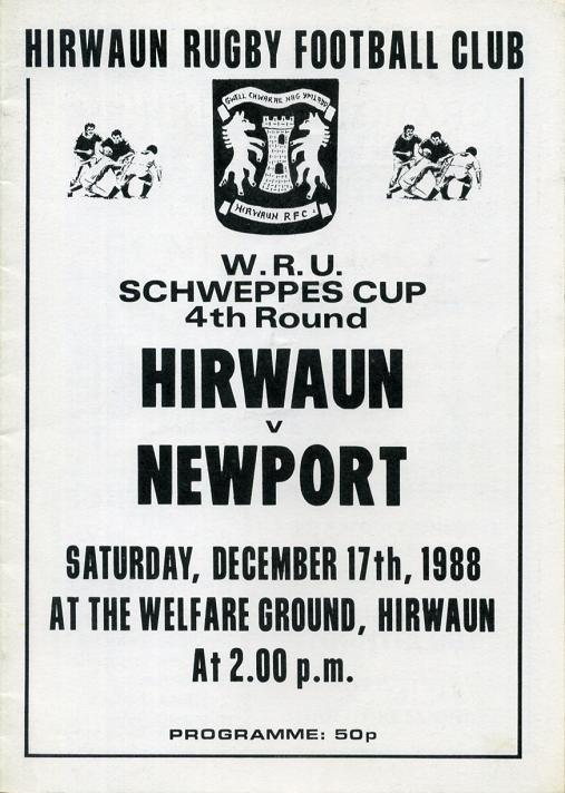 "I am sure that Newport, who won the W.R.U. Cup in 1977 and were finalists in 1978 and 1986, will provide us with strong opposition today. But not to be forgotten is the fact that Hirwaun reached this stage of the competition last season and lost only narrowly, six points to nil, to Ebbw Vale in an exciting match in which the only try was scored in the last ten minutes. We hope to do better this season."