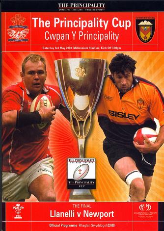 Percy Montgomery kicked a penalty - his 10th in a row at the Millennium Stadium and Stephen Jones replied for a 3-3 score. Aggressive defence by Newport kept the Llanelli midfield closed down and although they had more than their fair share of territory and possession they could find few gaps. Montgomery landed a huge drop goal and a further penalty for a 9-3 lead. The match then swung dramatically as fly-half Howarth?s inside pass was intercepted by flanker David Hodges to put wing Mark Jones away to score a try converted by Stephen Jones that put Llanelli ahead 10-9 at HT.