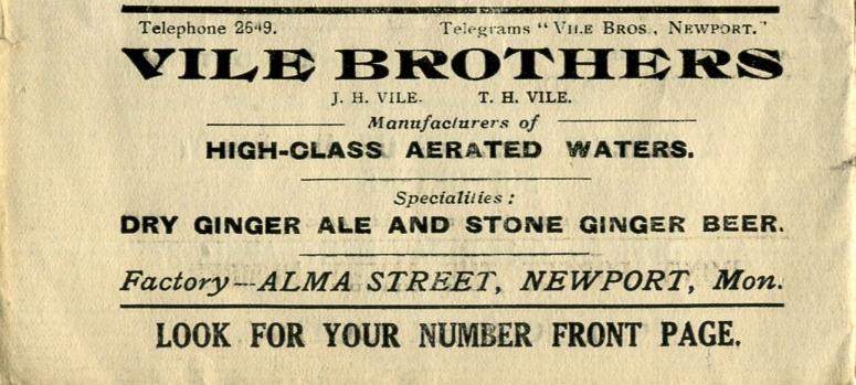 "Tommy Vile's great career as a footballer is well-known the world over and many admirers of him will long remember his most successful season, when except for two defeats, both games by one point - (Swansea and Neath), in 1910 and 1911 he captained the Newport side. He has also captained the Welsh side as recently as 1920 and 1921 against Scotland, at Swansea, in that memorable game when the crowd invaded the playing pitch."