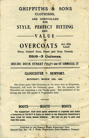 "This match concludes the holiday programme for Newport, but home games on three successive Saturdays promise interesting and varied fare, for the opposition will be provided by the Old Merchant Taylors, Abertillery, and Swansea, in that order."