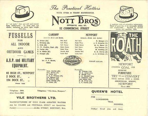 Western Europe was eerily quiet during this 'phoney war'. Rugby fixtures continued with Newport playing a whole season for 1939-40, whilst preparations for war continued in earnest. Match programmes were made smaller and the January Whist Drive was cancelled. But there were few signs of conflict, Gas masks were distributed to civilians, and everybody waited for the proper war to begin .