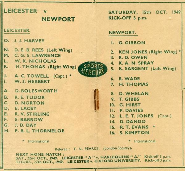 "Newport, our visitors to-day, are the second Welsh side to appear on Welford Road this year and we give them our usual hearty welcome."