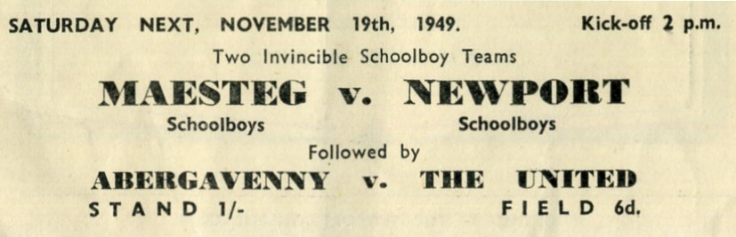 "Arrangements have been made for away visits to Penarth (2/6d.), Swansea (8/-), Llanelly (8/6d.) and Newbridge (2/-). Have YOU reserved your place? Remember time is short, and once these away matches begin you may find difficulty in contacting the officials, so book your seats NOW, and help the Committee to get the right number of coaches."