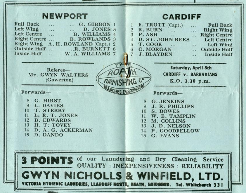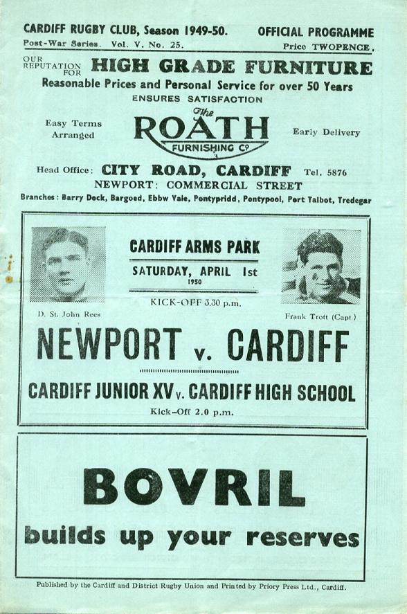 "Tradition has it that Cardiff and Newport enter the field of play determined to win, but also to play the game in the best spirit. Cardiff have not been beaten since 1946 by Newport, but the latter club has always taken defeat in a sporting manner. They are content to go on trying and hope that fortune will smile on them soon, if not today."