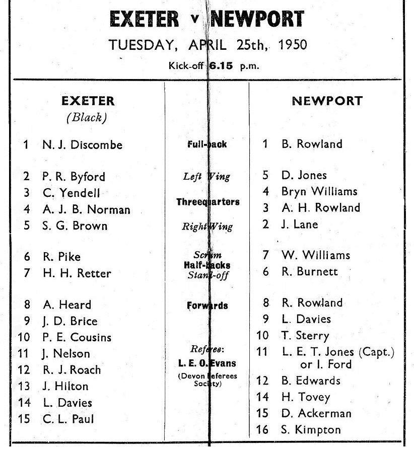 "TO-NIGHT we welcome to our ground the Players and Officials of the Newport Club on this the first post war game