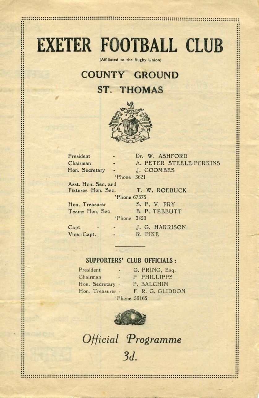 "Next Saturday the " A " Team are at home to Royal Naval Air Station, Yeovilton. We have the best " A " team fielded since the war and they are having a very successful season."