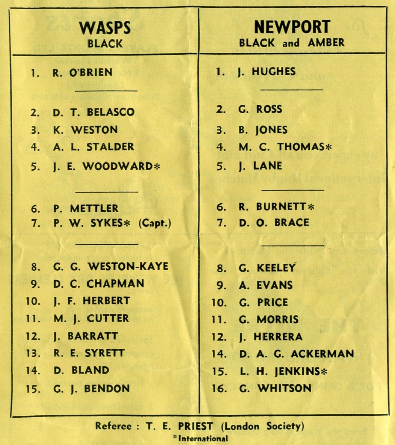 "Today we welcome Ihe mighty Newport team, fresh from their splendid victory last week by 11 points to 6 points over Cardiff at Cardiff Arms Park, a game which attracted over 32.000 spectators. Newport always have a fine team and though they are without full back Garfield Owen and the evergreen right wing Ken Jones today, both on international duty for Wales, they will have a very strong and powerful side out."
