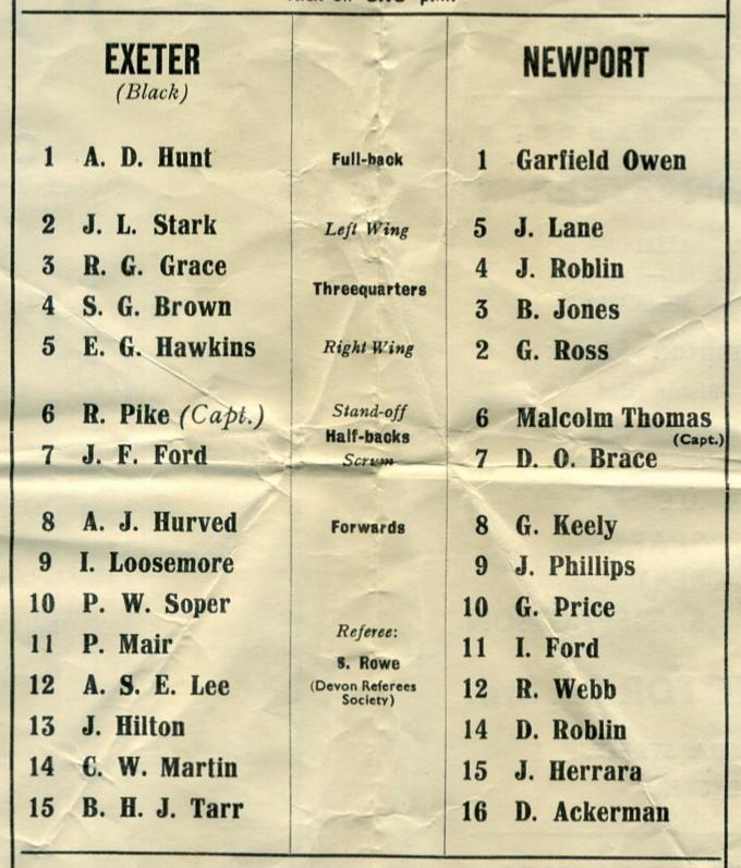 "TO-NIGHT we close down our home games this season with a visit once again from the Newport Club. They are always very welcome visitors to the County Ground. They play the open game that we like to see in Exeter and we are delighted to see them once again."