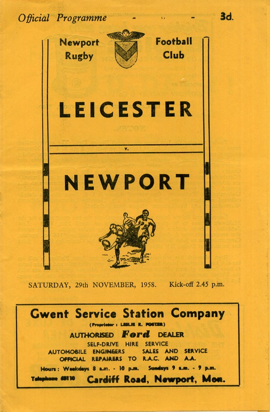 "We are pleased today, to welcome the "Tigers" and although our boys could only register a victory over London Welsh, last Saturday, by a narrow margin and were held to a draw under the lights on Wednesday, by Penarth, we feel sure they will put up a good show against Leicester."