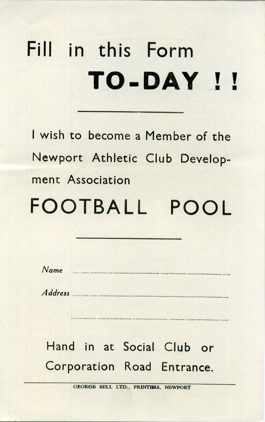 "Supporters please note, that it is to the return match with today’s visitors on Saturday, February 14th, that we have arranged the Annual Outing. We We leave early Saturday morning return Sunday, approximate cost £3/12/6. Bookings can be made immediately with any of the Committee, or at the Canteen on the grounds after the match. Paying-in cards, if required can be obtained. Our next trip will be to Penarth on Saturday, December 13th, leave N.A.C. 1.15 p.m., fare 3/9d. Please book as soon as possible."