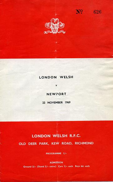"The visit of NEWPORT (whom we are delighted to see here) every year towards the end of November is one of the greater elements of our season. This year, Newport come with more glamour than usual; for so recently they joined Oxford University in demonstrating that the young men from South Africa are not invincible. Moreover, they were not quite at full strength in their engagement. Today, they come to Old Deer Park with just about the strongest XV that they can field. That will be fine for the paying customers - for us? Well, we shall see. Then, we can add to their laurels the overwhelming win they had when they met the much fancied Cambridge University side."