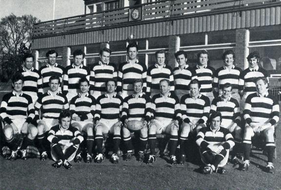 The Watsonians team shown in the photograph above includes: Back Row -D. S. Paterson, D. R. Harvey, R. J. N. Patrick, A. M. Hunter, R. S. Tolbert, J. B. Mitchell, P. C. A. Baker, D. E. D. Neave, G. Robertson and R. H. Blake. Middle Row - D. D. Mathieson, P. C. Forbes, I. Robertson, A. L. McLaren, P. Gallagher (Captain), A. C. McNish, W. S. Henderson, R. G. Young and D. J. Hood. Front Row - A. I. Gregor and M. Watters.
