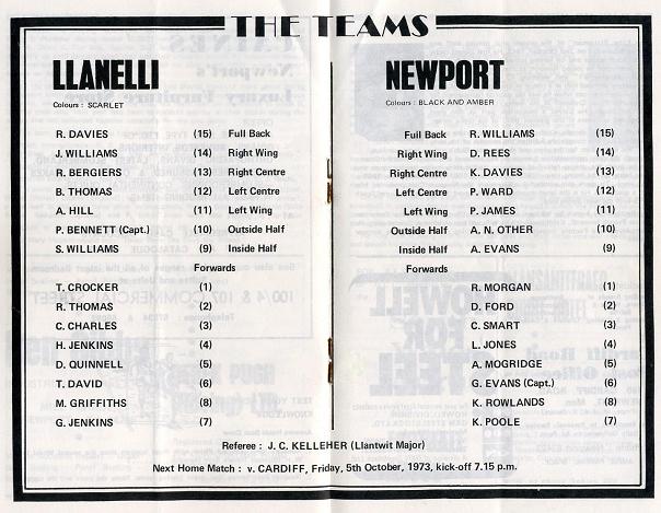 "Although Llanelli were one of the founder members of the Welsh Rugby Union in 1880 and have produced many great teams and players during their 100 year history (the following are a few from various eras C. B. Nicoll, R. T. Gabe, Tom Evans, E. Finch, J. Lang, A. Skym, Albert Jenkins, W. H. Clement (the present secretary of the Welsh Rugby Union), Ivor Jones, Terry Davies, D. O. Brace, Carwyn James, Lewis Jones, Rhys Williams, Terry Price, Barry John, D. K. Jones, Norman Gale, Delme Thomas}, they have certainly projected a tremendous image over the last six years. Their public relations have been magnificent and backed up by a sparkling brand of rugby on the field, they must rank as one of the greatest clubs in modern day rugby."
