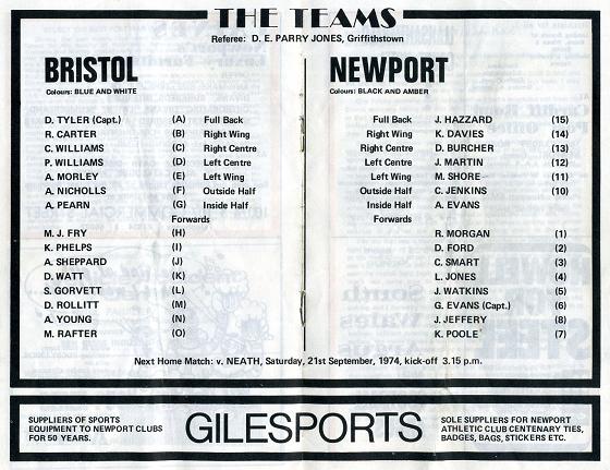 "With the Tongans playing their first game in Wales today, it will be interesting to find out the strength of the opposition we have to face on the 9th October, while after the game the 'Big Five' select the Welsh Rugby Union Presidents' XV to visit us on the 25th September, 1974."