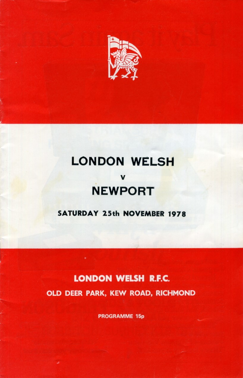 "WE ARE most pleased to welcome NEWPORT to Old Deer Park this morning. Last Saturday the 'Black and Ambers', who won the WRU Cup in 1976-77 and were beaten finalists last season, took the first step towards what they hope will be a hat-trick of final appearances when they beat Newport H.S.O.B. 22-0 in this season's first round; they meet Abercarn at Rodney Parade in the second round."