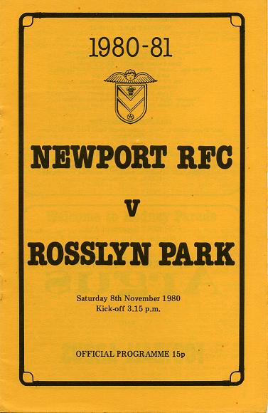 "Welcome Rosslyn Park ? meetings between our two clubs have been few but we are certain that following last season's fine victory you will be endeavouring to achieve your first ever victory at Rodney Parade this afternoon."