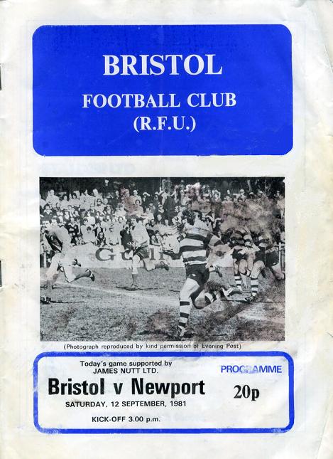 "Today then we continue the traditional September initiation test by welcoming The Newport Club, its Committee and Supporters. There is never any question of Bristol easing into the season gently; with a September fixture list of Cardiff, Newport, Swansea and Gloucester! Last season Bristol completed a coveted double over Newport winning 20-10 at Newport in September and 22-16 at the Memorial Ground in December. The overall records of the Club last season were:-"