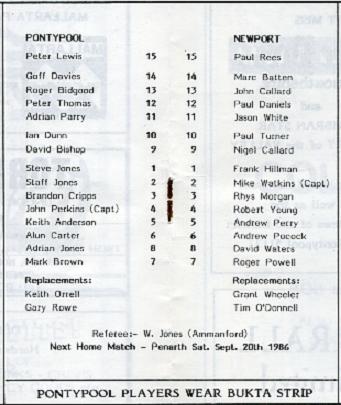 "As well as their much feared pack, Newport are developing an exciting looking back division. Right wing, Marc Batten is another Wales 'B' player and left wing, Jason White toured Italy with the Wales 'B' team last summer. Paul Daniels and Jonathon Callard have formed an effective centre partnership as have Paul Turner and Nigel Callard at half back."