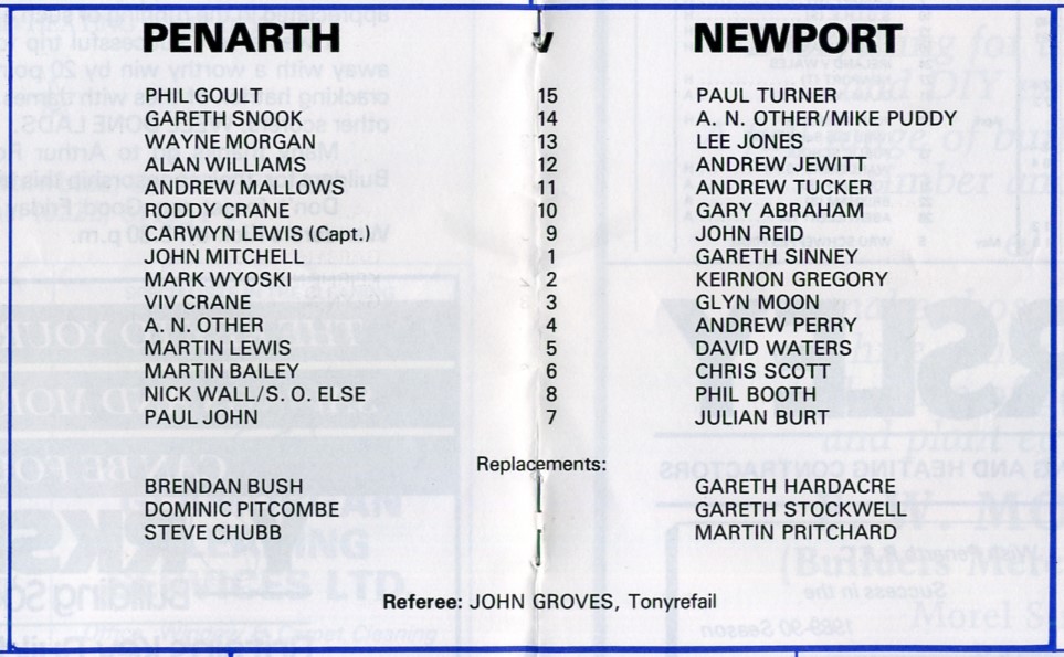 "We welcome our close friends Newport to the Athletic Club this evening and we meet them at a time when they are going through a purple patch which was only ended at Pontypridd last Saturday when they were reduced to 14 men. If we are to avenge our 55 points to 6 defeat at Rodney Parade we shall have to show more commitment than in our last game against Cheltenham."