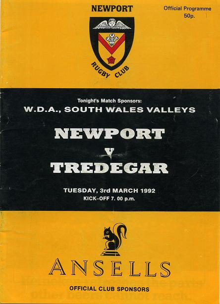 "This is emphasised by the fact that Tredegar remain on the fixture lists of seven of the Heineken League first division clubs, including Gwent's top three, Pontypool, Newbridge and, of course, Newport - their hosts today. They also have fixtures with a number of English clubs, among them Torquay, Cheltenham and Lydney."