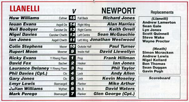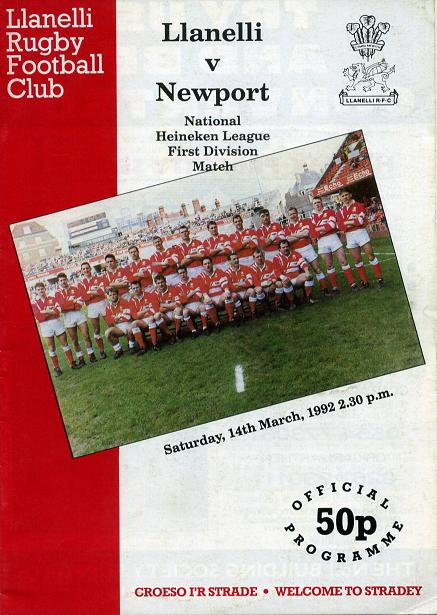 "Newport come to Stradey in good spirits having acquitted themselves well in this their first season in the first division of the Heineken League; having gained promotion from the second division last season as champions."