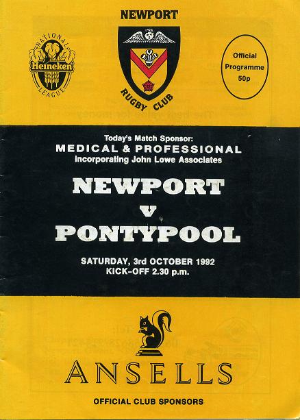 "Like Newport, their close rivals, Pontypool, today's visitors to Rodney Parade, are hoping to achieve a greater measure of success in the Heineken league's top division. Last season the league records of the two clubs were very similar. Both won seven matches, and seventh-placed Pontypool gained only two more points than eighth-placed Newport."
