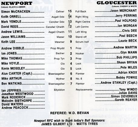 "At the moment, Gloucester are striving to retain their position in the top division of the Courage League, and the indications are that they will succeed in their objective, which will be a good thing for West Country rugby prestige!"