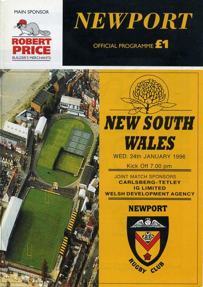"Today's visit of New South Wales to Rodney Parade, Newport is particularly pleasing as it gives me the chance to reflect on my first and only encounter with the visitors from Australia."