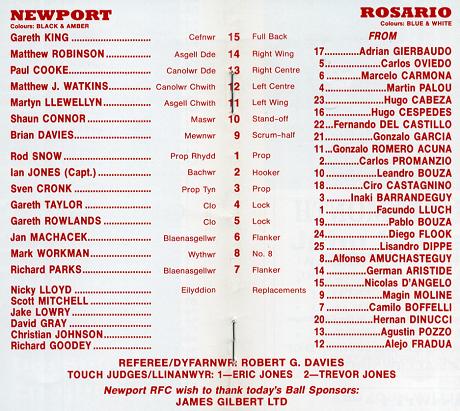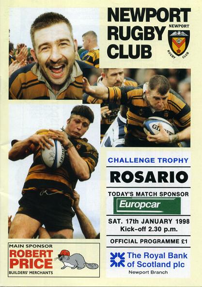 "Today Newport welcome Rosario from Argentina, who have been on the receiving end of two heavy defeats in the Challenge Trophy - 51-31 at Swansea and 53-16 at Cardiff. At Swansea outside half Leandaro Bouza looked a polished performer and their backs full of enterprise, but their pack struggled up front and may face a difficult task today against the highly regarded Newport scrummage."
