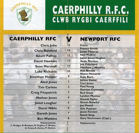 "The fortunes of both clubs have changed dramatically since this time last season. Newport have grown stronger which befits a club with such an illustrious history, while Caerphilly have not enjoyed a good season. The reason being "money". Even so we will work hard to turn things around, be assured of that."