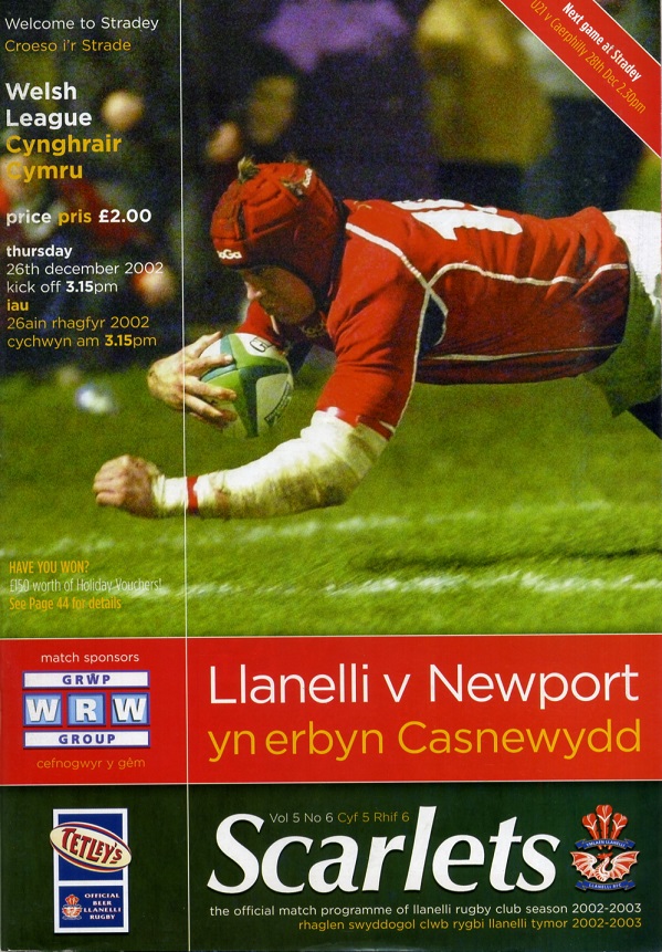 "I hope you are all enjoying the Christmas break and I wish you all a very Happy New Year. May 2003 bring you all you wish for, including a succesful season for the Scarlets."