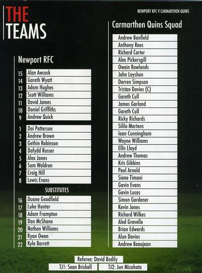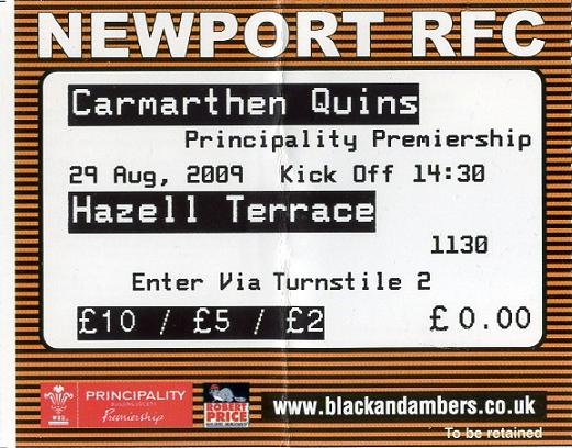"I was tempted to say that Carmarthen are an 'unknown' but that wouldn't be true. We know that they won Division One West by a huge margin to gain promotion to the Principality Premier League and we also know that they have recruited some fine players. Today's game will be tough and the result will probably give us an indication of how our season will turn out. Having mentioned pre-season friendly games, I believe that the games against Moseley RFC and Plymouth Albion RFC were very useful to our team's preparation. Both teams have a big pack of forwards and tend to use their big men to drive up the middle of the park. Our coaching team were pleased with the way we handled this and very pleased with the way our backs cut the defensive line several times in each game. Perhaps we can look forward to The British & Irish Cup with a bit of optimism. We were delighted to see so many Newport supporters at the game in Plymouth. The boys have asked me to pass on their thanks for the vocal support during the game and also for your 'support' in the clubhouse after the game!!!"