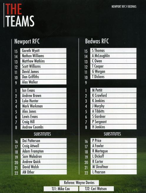 "Welcome to today's game against Bedwas and thank you for coming out to support us - particular thanks to those supporters for whom this is the third Newport game they have watched in just over a week!"