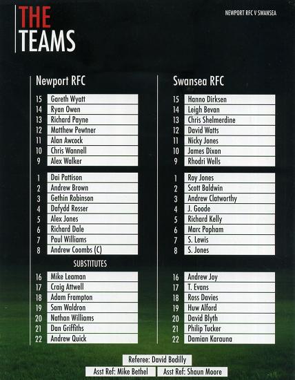 "Welcome to today's match against Swansea RFC. As always though a warm welcome is extended to the players and supporters who have made the trip from Swansea."