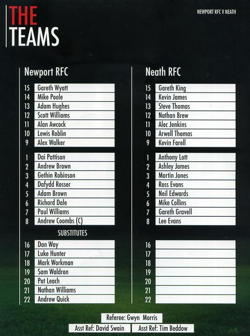 "Back to tonight's encounter with Neath, and we extend a warm welcome to the players, supporters and management to Rodney Parade."