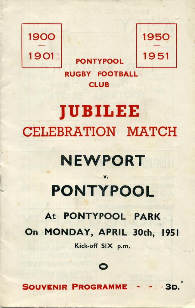 From the programme for this, Pontypool's 50th Anninversary Jubille Celebration Match:-