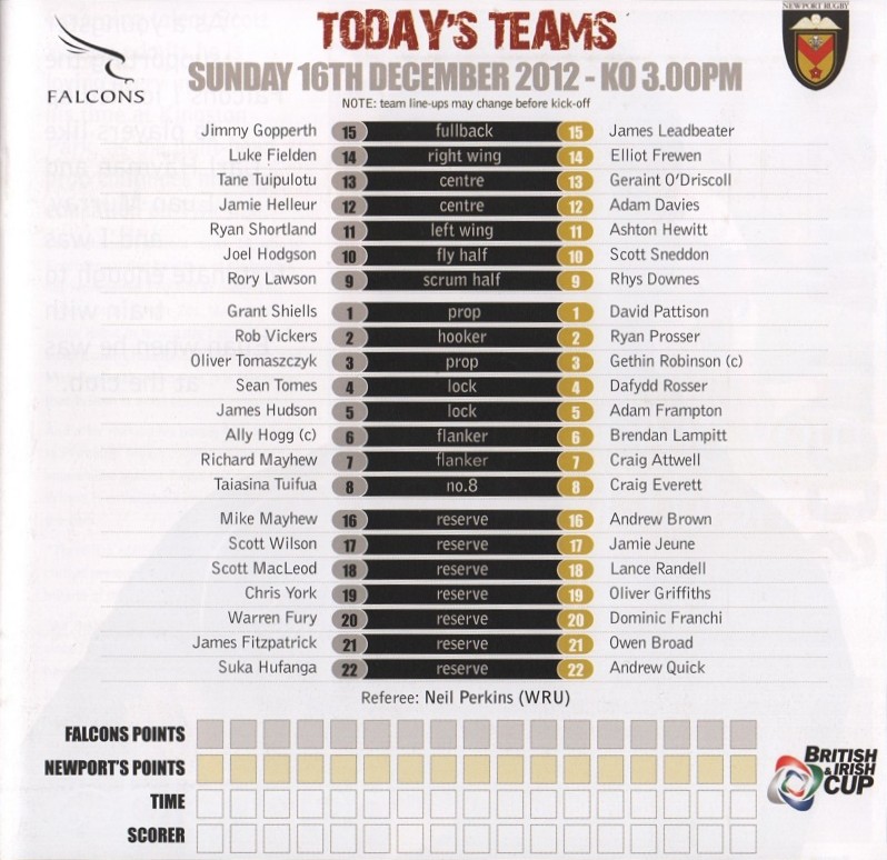 “Welcome to another exciting British and Irish Cup game here at Kingston Park.”