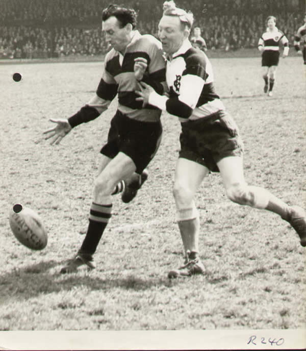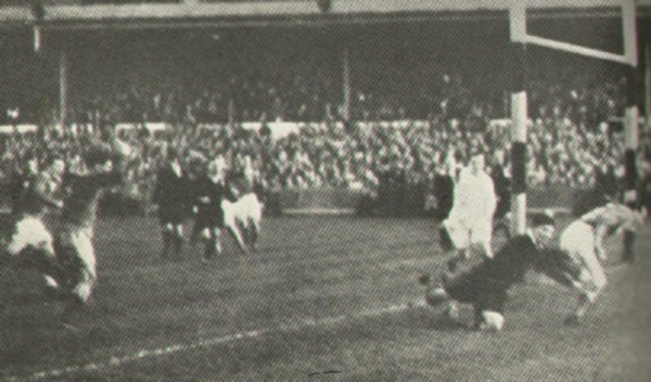 "Fifteen minutes into the game, Willis robbed his opposite number and Sid Judd dribbled upfield. I joined in, tackled Bob Scott as he fielded and looked up with delight as Sid pounced on Scott's wild pass to touch down for a try which Gwyn Rowlands converted. But our joy soon turned to despair and following a non-stop forward assault Bill Clark scored a try which Ron Jarden converted as well as kicking a penalty goal. Half time arrived with New Zealand leading by 8 pts to 3 pts."