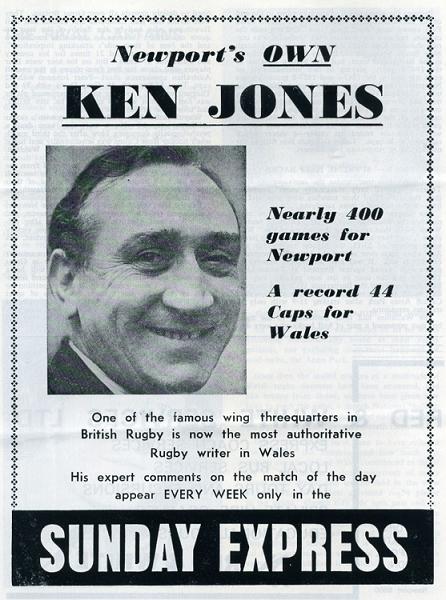 In October 1980 Newport played New Zealand and the match programme contained the following article by Ken on Wales v New Zealand in 1953:-