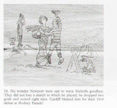 Born Westbury on Severn, 15 July 1874 and played 18 seasons for Cardiff ? captaining them for 4 seasons. He gained 24 Welsh caps - 3 as a Newport player. Cardiff and Wales capt (10 times), British Lion 1899, who joined Newport Jan 4th 1902 until end of season (He had a business in Newport with H B Winfield). He captained Wales to win Triple Crown 1901/2 : Jan 11th 1902 vs England (W9-8), Feb 1st 1902 vs Scotland (W14-5) and Mar 8th 1902 (W15-0). Probably the greatest centre of his day and he played as well as ever behind half back Llewellyn Lloyd whom he said was the best half he had ever played with. His great kicking and defending meant that Newport did not lose one match in which he played. He scored in 8 of the 11 matches he played. 1901/2: 11 apps scoring 8 tries and 2 dg. Later became international referee. Died at Dinas Powis, March 24th 1939.