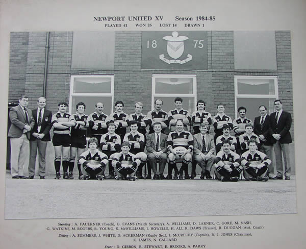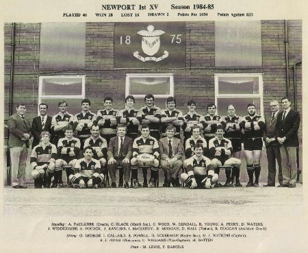 Mike Watkins resigned from the Welsh team captaincy but decided to continue at club level for Newport. He played for the Barbarians and completed 40 appearances for Newport 1st XV. He was followed by vice capt Chris Williams (38), Richie Collins (38), John Rawlins (35) and David Waters (35). Top points scorer was Mike Lewis with 264pts from 26 games while Marc Batten scored 24 tries in 32 games. Young fullback Arwel Parry scored 89pts in the last 11 games including a 51yd penalty to finally beat Pontypool at Rodney Parade after 15 consecutive defeats. David Waters played for Wales B and the Barbarians.