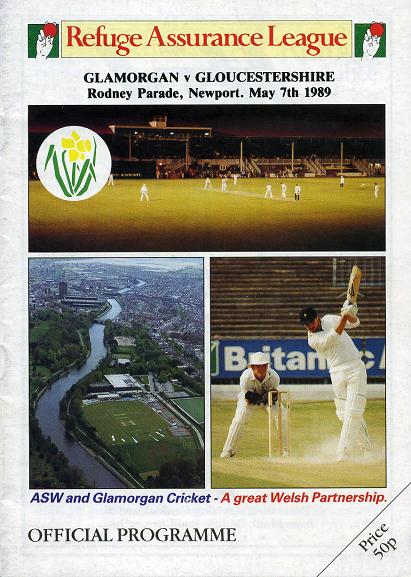 Despite seeing its last first class County Championship cricket game, between Glamorgan and Warwickshire, in 1965, Rodney Parade was still clinging on as a venue for first class cricket, as witnessed by Glamorgan's Refuge Assurance League game against Gloucestershire on 7th May 1989. Sadly, for a ground that had seen Newport and District play a W. G. Grace All England XI in 1881, and regular cricket since, this was to prove the last game to be played on the ground before it was developed. A subsequent one day fixture, against Yorkshire in 1990, was abandoned without a ball being bowled. In all Glamorgan had played 31 games at Rodney Parade, including county championship, friendlies and one day games.